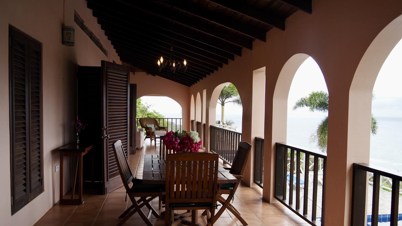 SpringTop is a beautifully maintained Spanish-style home built in 2000, located in the peaceful hills of Spring, Bequia. Set on a quiet dead-end road, the property offers exceptional privacy and a dramatic 180-degree view stretching across the sea toward Mustique.